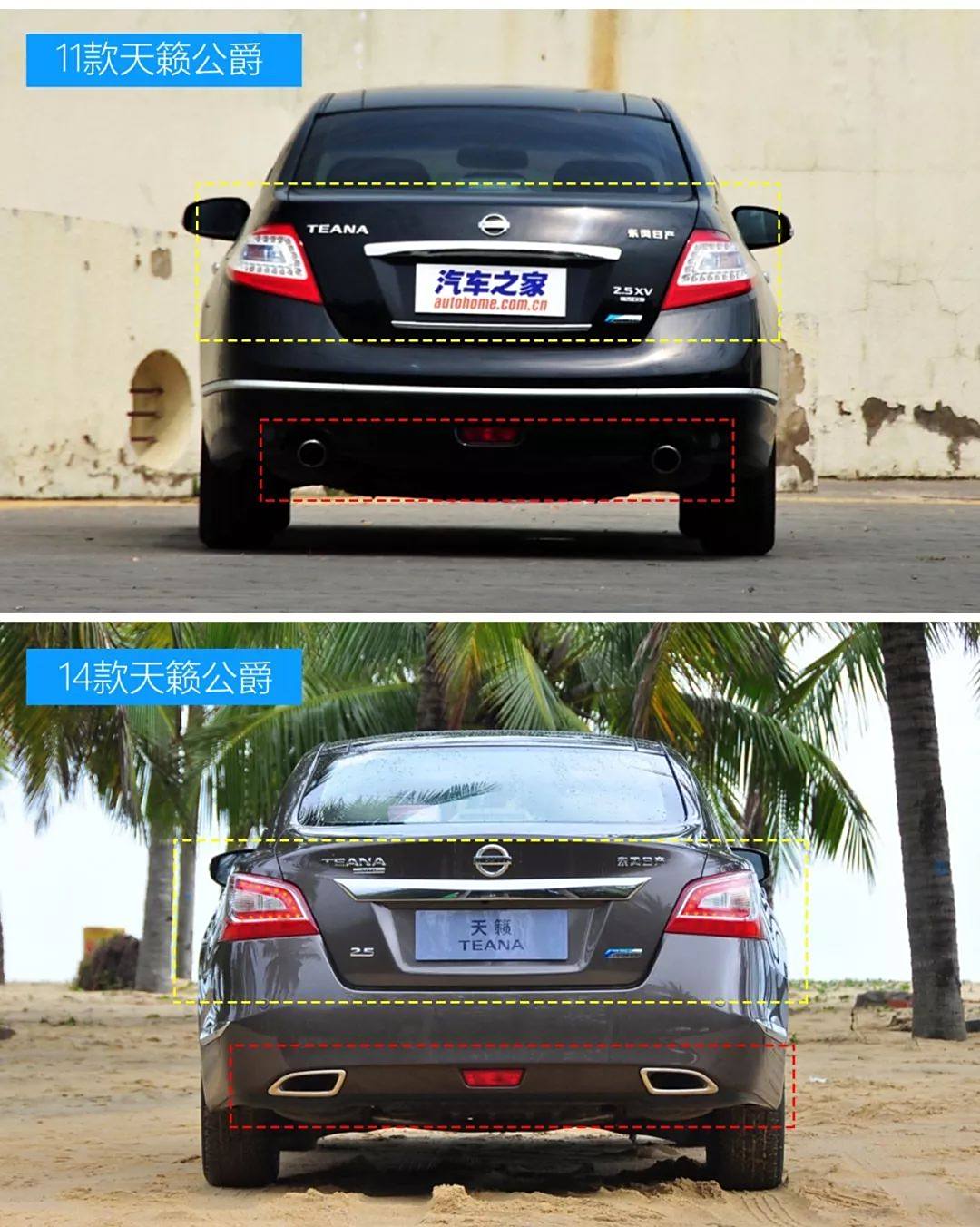 11款天籁公爵和14款天籁公爵主要区别:前脸、尾部、排气管、发动机