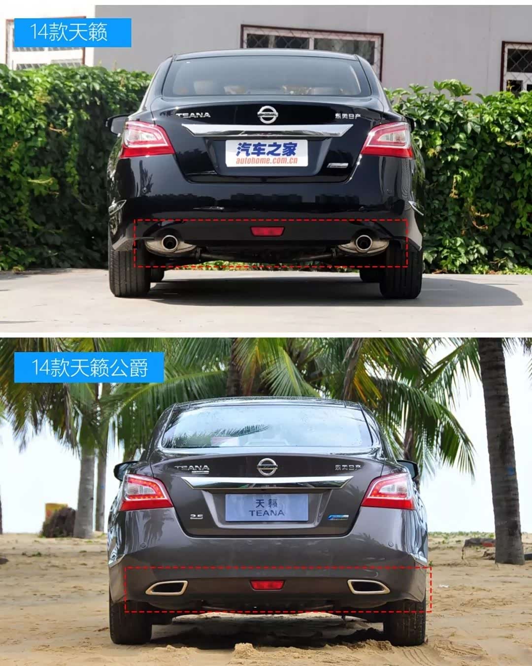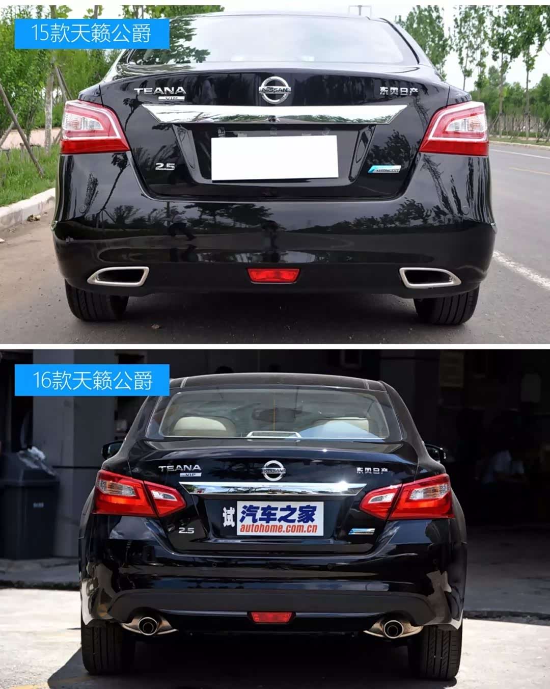 15款天籁公爵和16款主要区别:前脸、尾部、排气管