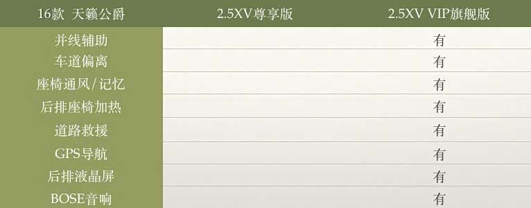 16款天籁公爵有两个配置:2.5XV尊享版、2.5XV VIP旗舰版