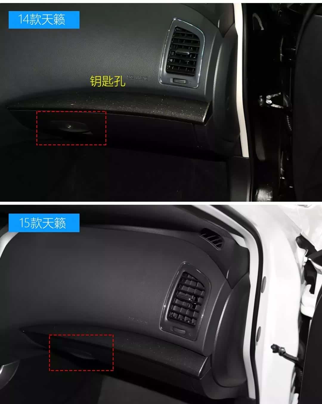 14款和15款天籁/公爵的主要区别:取消副驾驶钥匙孔