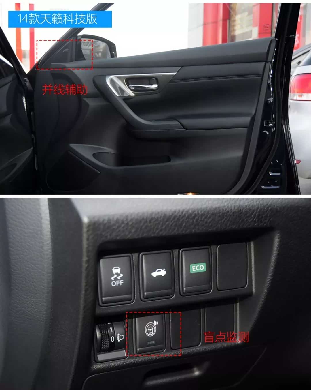 14款天籁科技版增加了并线辅助和盲点监测功能
