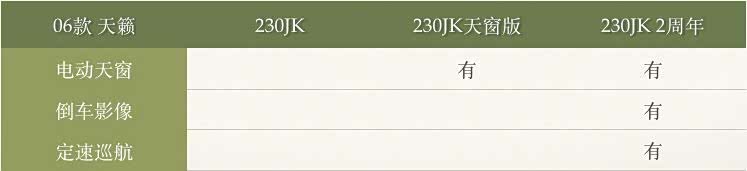 06款天籁200有两个配置:200JK豪华版、200JK豪华天窗版