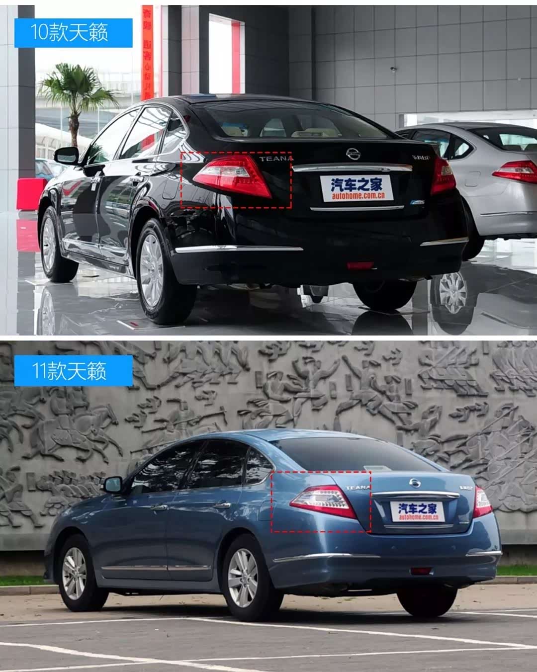 11款和13款天籁的主要区别:前脸和尾部
