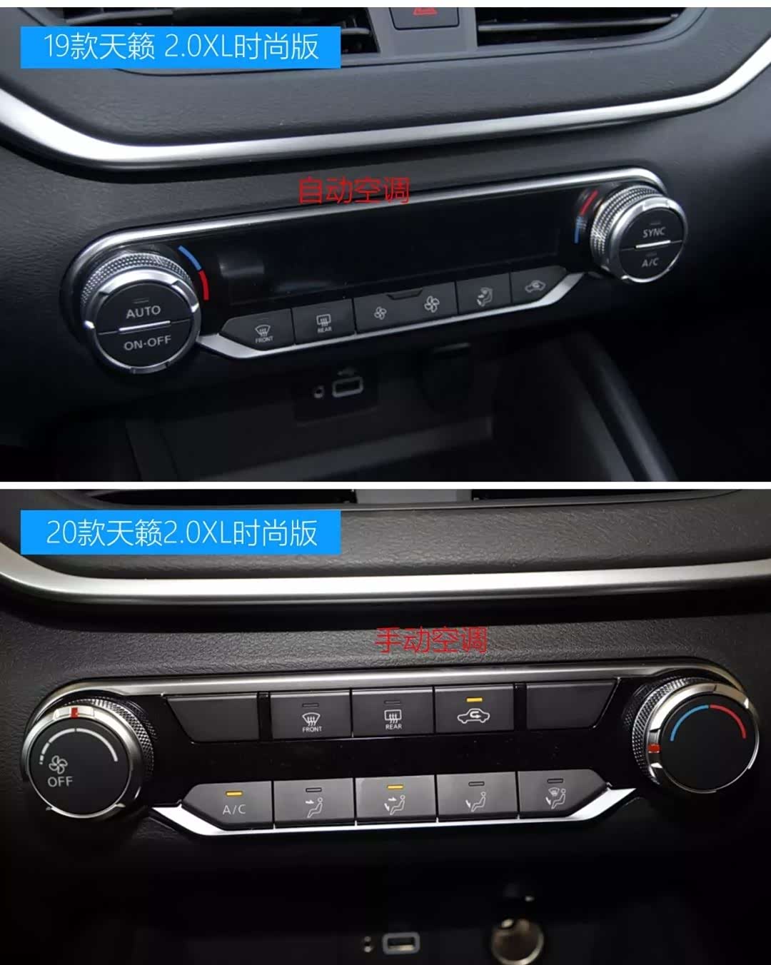 19款天籁和20款天籁 2.0L时尚版的主要区别:空调类型