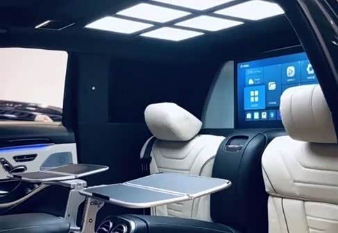 在后排,我们看到前后排为一个隔断的设计,大尺寸的高清4K显示屏放在了这个隔断上,顶棚依旧放置了9宫格的LED车顶灯。另外还加入了两个独立的小桌板,瞬间变成了一个移动的商务舱。后排座椅仅需按下一个按钮,便可将座椅设置到舒适的角度,最大倾斜角度为43.5度。在动力方面,这款车搭载的是基于4.0L V8改装而来的发动机,其中峰值马力达到469匹,整个动力表现还是非常不错!