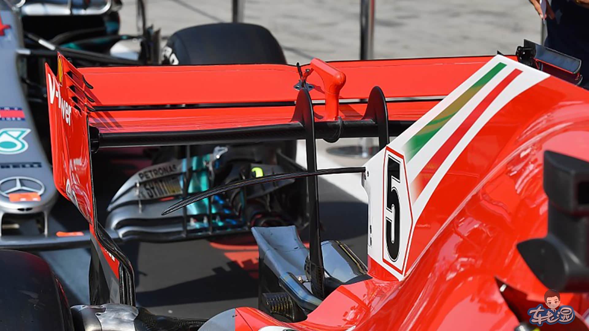 在弯道中,尾翼能为高速疾走的赛车提供充足的下压力稳定尾部。但在直道中,尾翼就成了阻力的主要来源。因此,在多弯或较短的赛道中,工程师会将翼片的攻角(可理解为翼片倾斜的角度)尽可能地调大来获取更大的下压力。而在多直道的赛段,如蒙扎赛道(整个赛季中平均车速最高的赛段)中,工程师会将攻角尽可能地调小,来减小高速中的阻力。