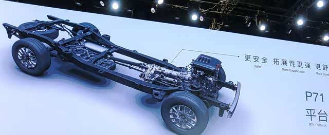我们知道P71平台与哈弗H9底盘有传承性,形式类似但结构、强度做了重新设计优化,目的是全球化平台,合规各个地区市场,覆盖多车型如皮卡、SUV、所功能车等,在悬挂上下横臂、弹簧等都有所变化,从轮距可以也可以看到调整结果,P71平台为1596mm。