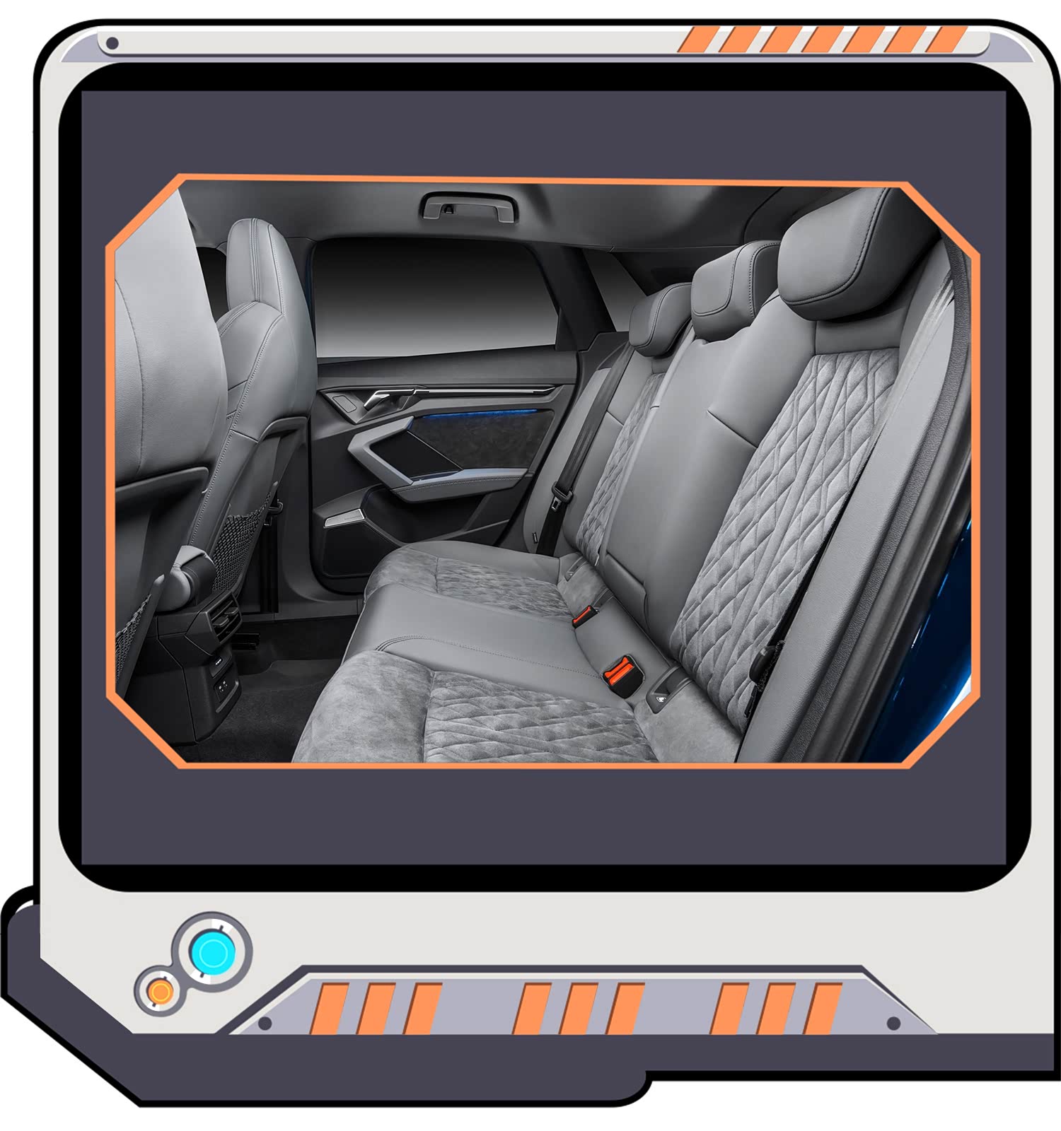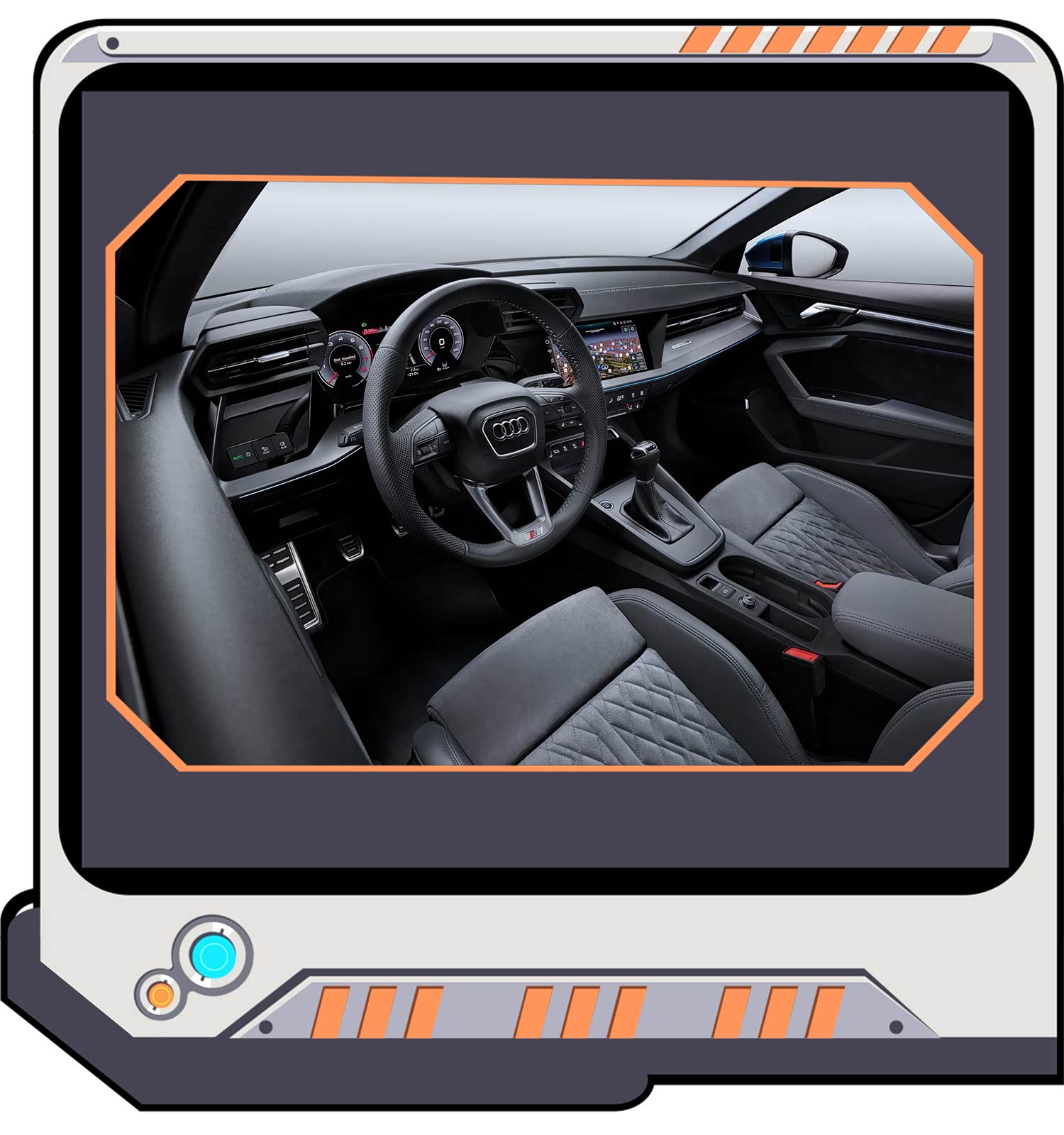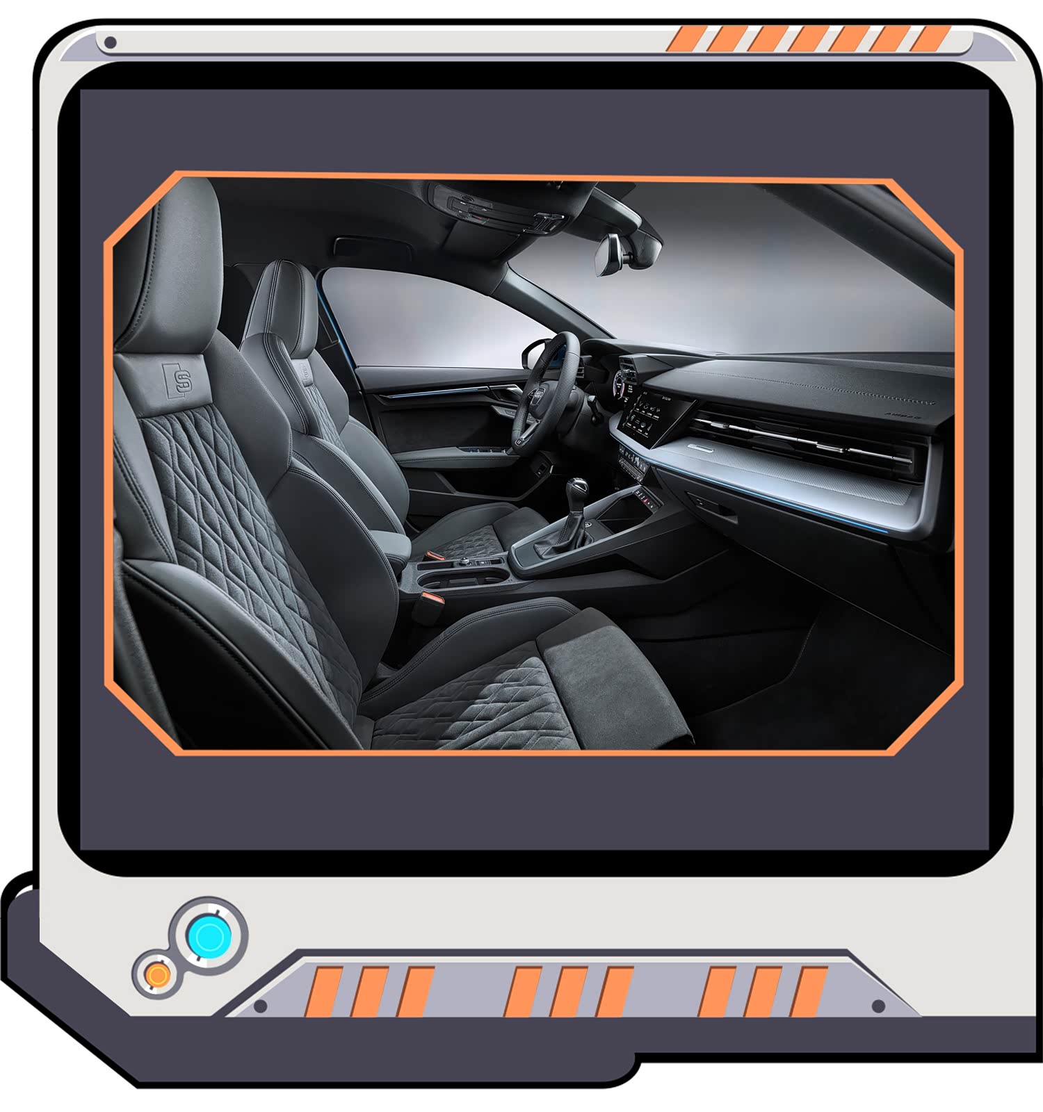 奥迪A3拥有三种不同的座椅材料设计。第一种是使用一种钢铁灰色名为 Torsion的材质搭配黄色撞色缝线,令人眼前一亮;第二种是名为“Puls”(脉冲)的材质;第三种使用在S-line车型中,采用黑色与银色的搭配设计,深灰撞色缝线强化视觉冲击感。在此之后,奥迪还将推出红黑配色搭配对比色缝线的设计。