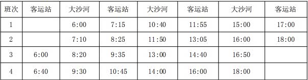 1、大沙河专线(大沙河-客运站)配车4部 车次24次
