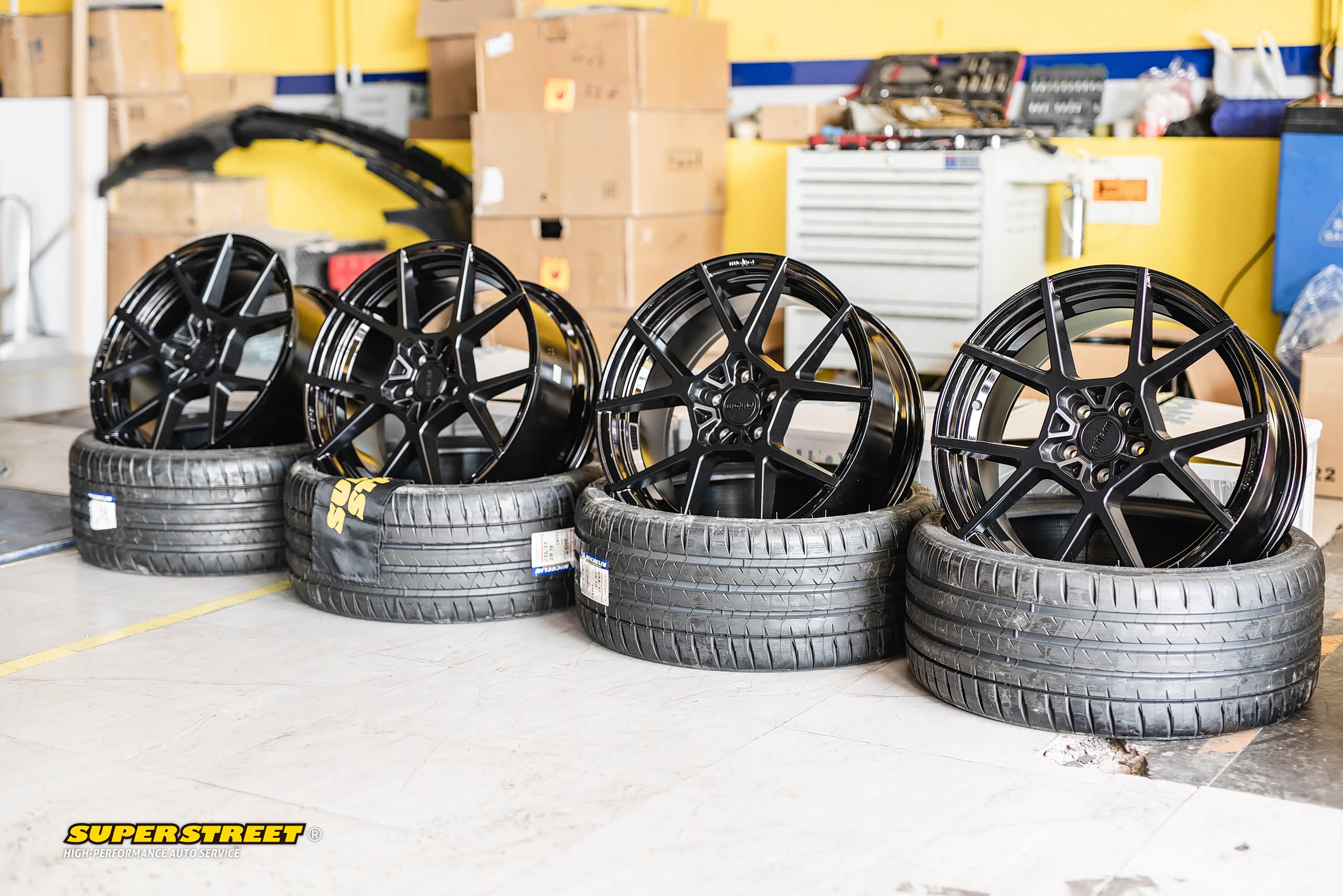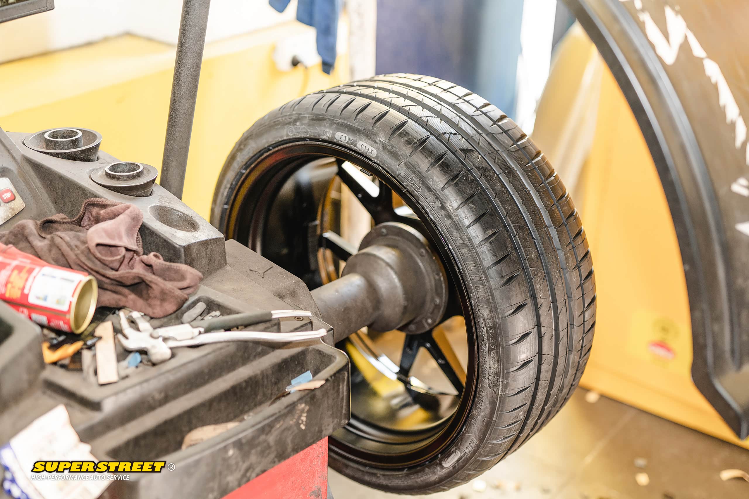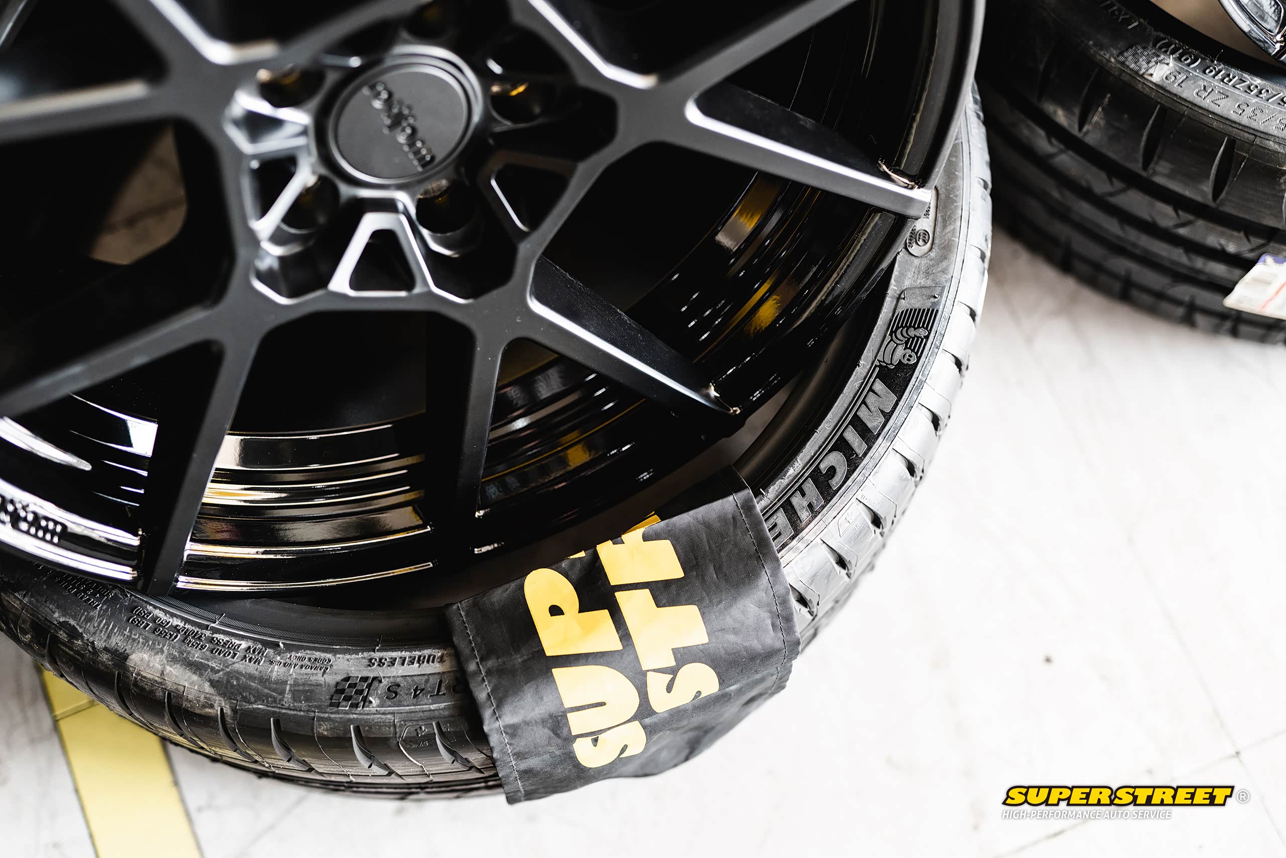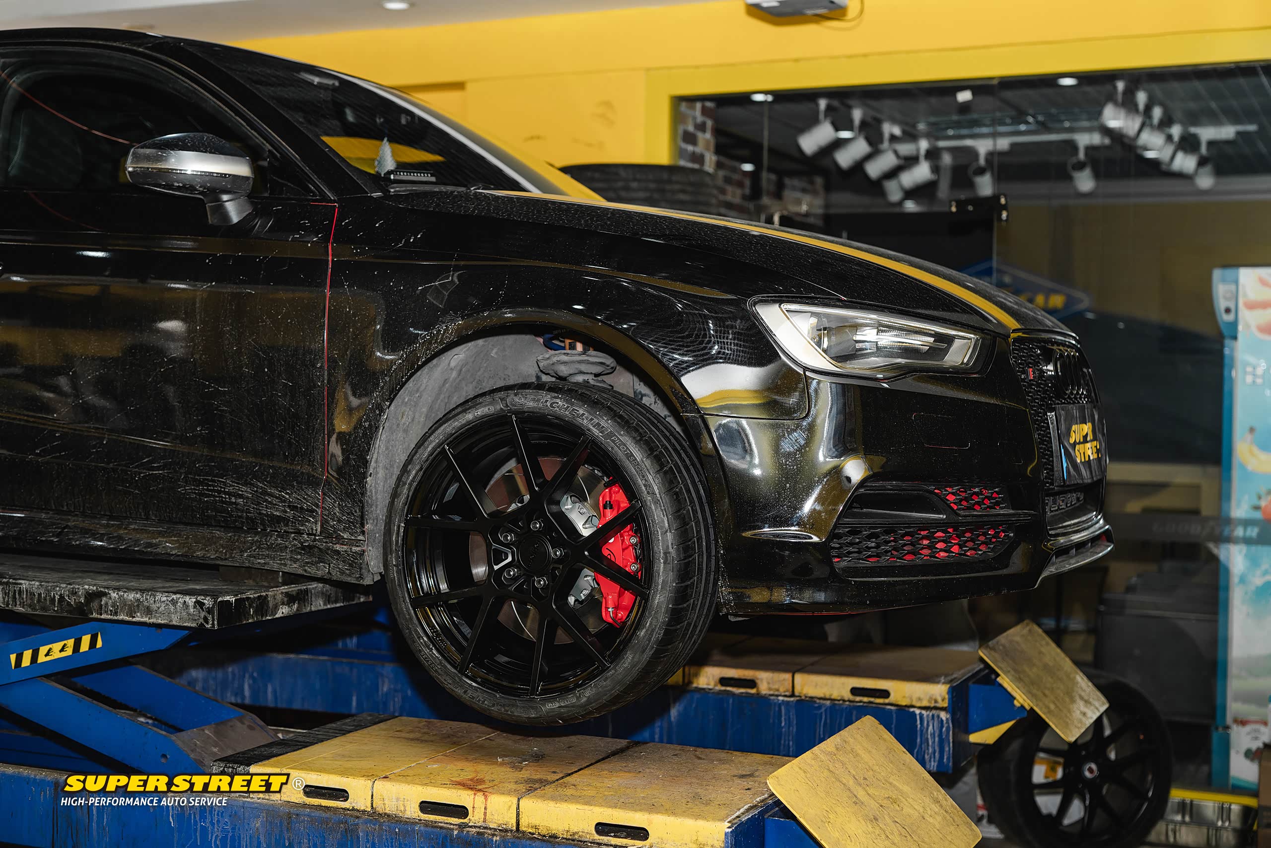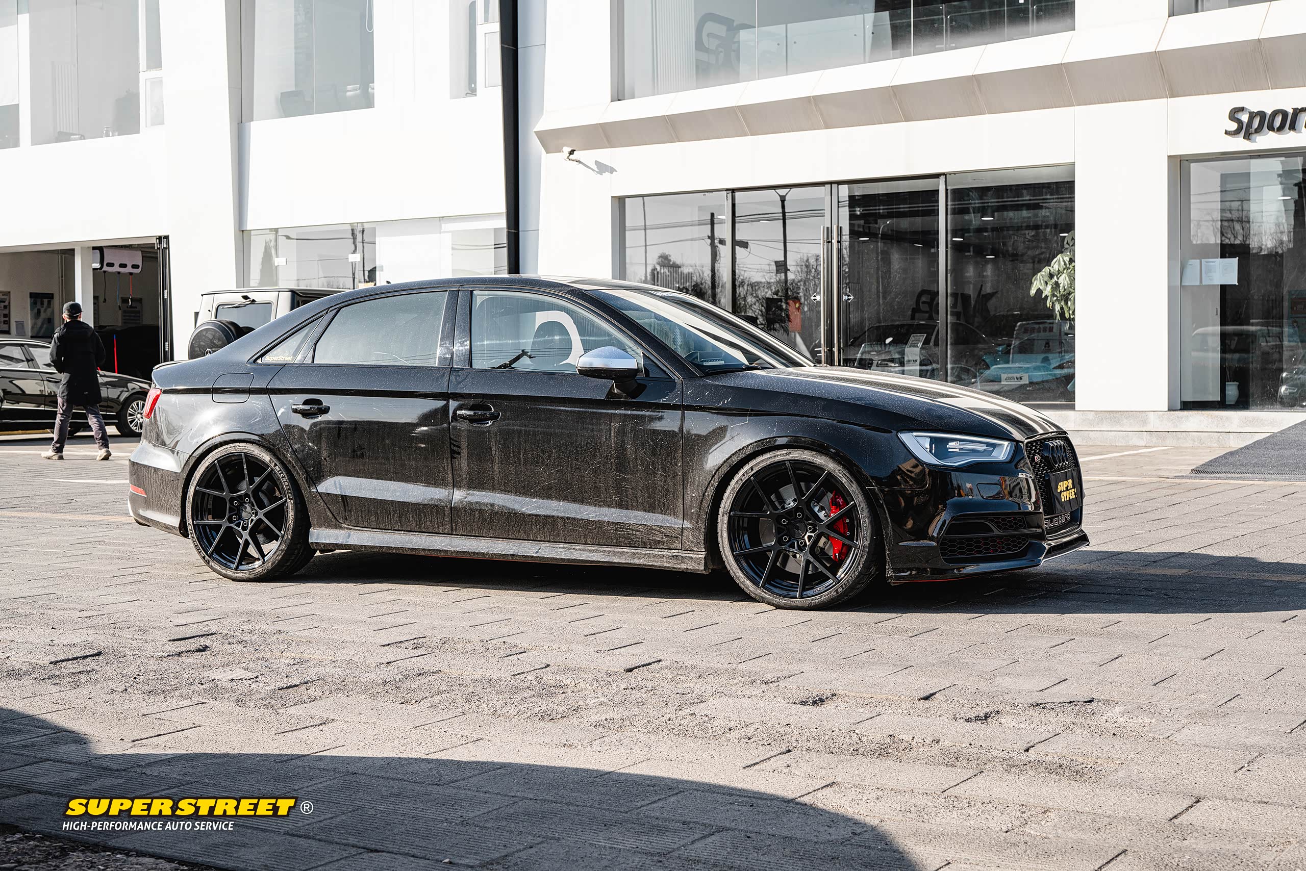 这个轮毂数据和奥迪RS3的一样(19X8.5J,ET35),使用了相同规格的轮胎(235/35R19),这台奥迪RS3改装了KW绞牙避震,也降低了车身,可以对比看下效果,