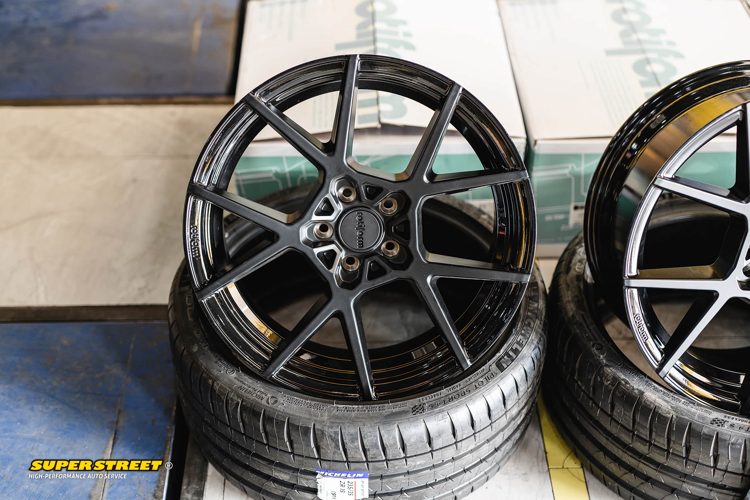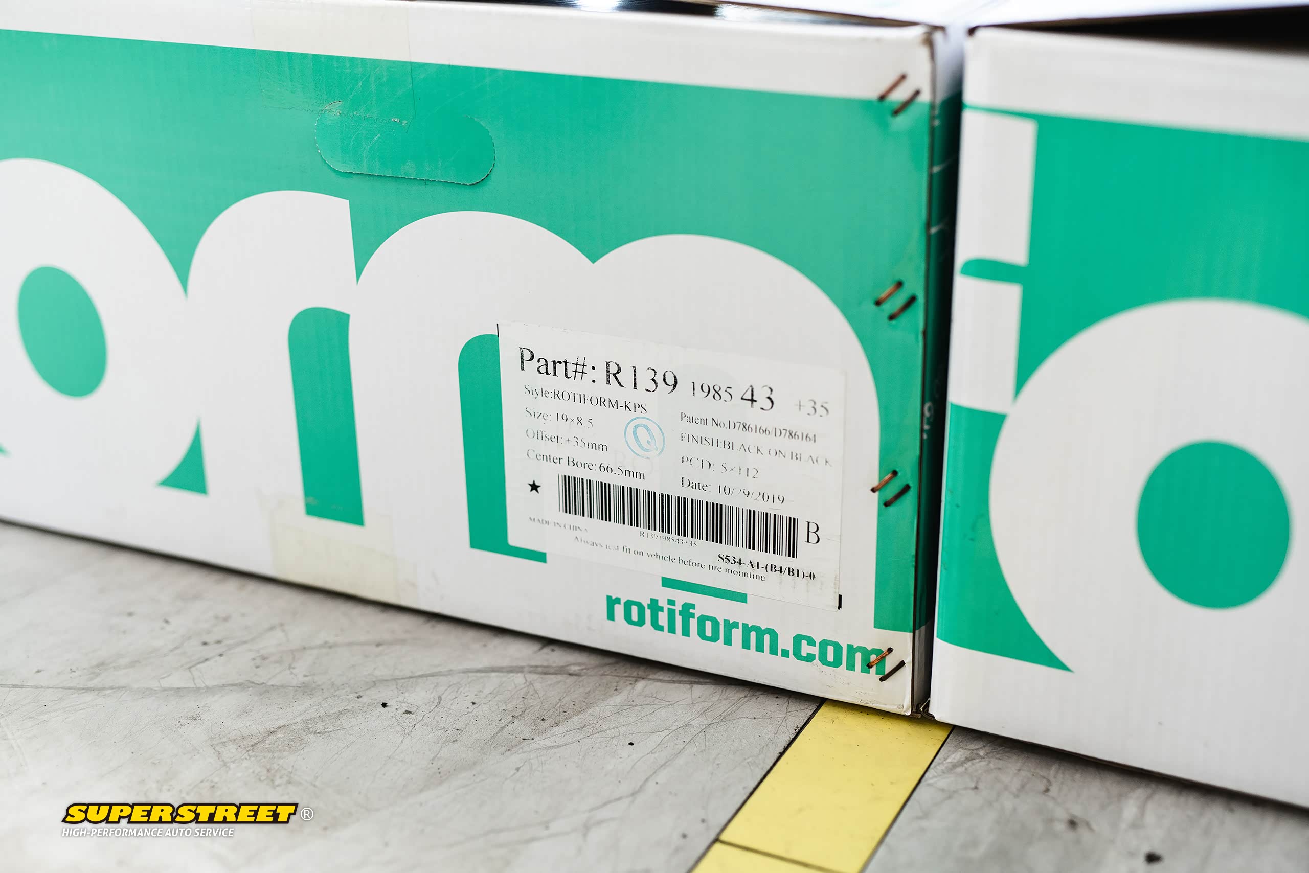 Rotiform轮毂;型号:KPS,颜色:黑色,尺寸:19X8.5J,偏距:ET35,中心孔径:66.5mm,孔距:5X112,美国品牌,中国代工生产。