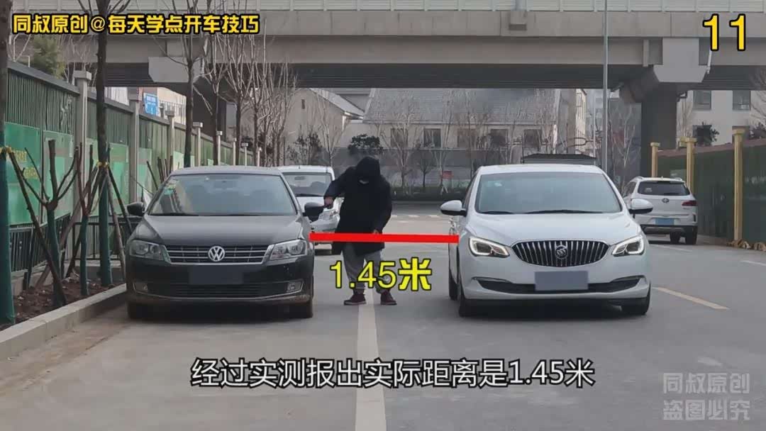 由于右侧车辆停放的有点摆斜,前后距离会存在差距,所以我们在测量时,实测的是前半部分,也就是照顾到右侧车辆驾驶员上下车位置,这个还是比较实用的。