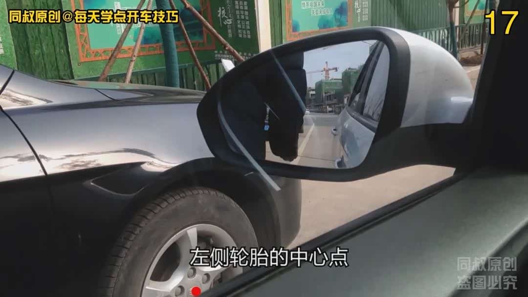 驾驶员视野看到左侧车窗下沿对齐到左侧轮胎的中心点,此时间距刚好是1米。