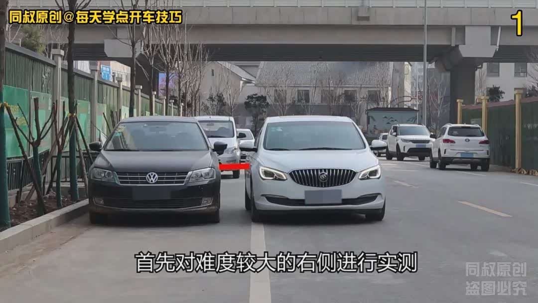 首先对难度较大的右侧进行实测,因为驾驶员位置距离右侧远,对右侧的观察没有左侧那么方便直观,所以判断右侧车距难度相对大一些。