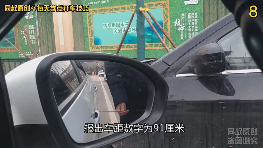 无论是在侧方位停车时还是在倒库停车时,也无论是左侧还是右侧,我们都需要对相邻车辆进行车距判断,那在车内驾驶员位置,如何做到不下车就能有效判断车距呢?