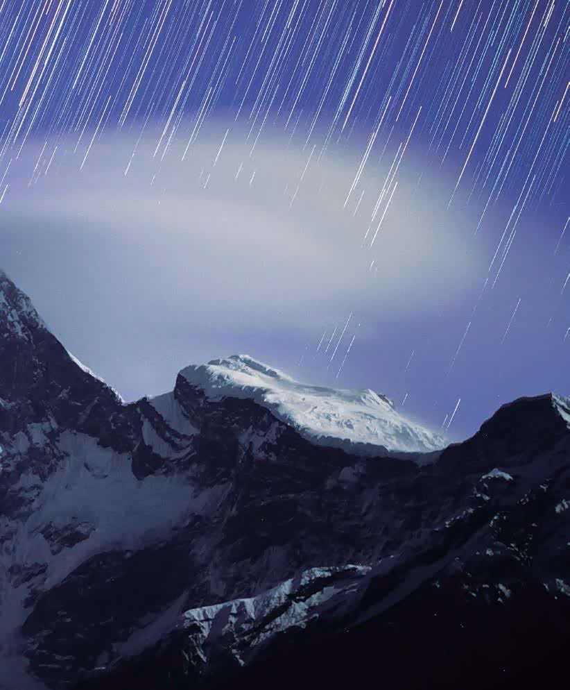 深蓝的夜空里,星光把雪山照得微微发亮,而小木屋里明亮的灯光照亮了四周翠绿色的树林,寒冷夜色里顿时升起一股暖流。光亮似驱散了黑暗,照亮世间万物,也许这就是我迷恋星空的原因吧!当银河逐渐移动,升上天空中时,那将是星空与多雄拉雪山的另一颗“巧克力糖”。