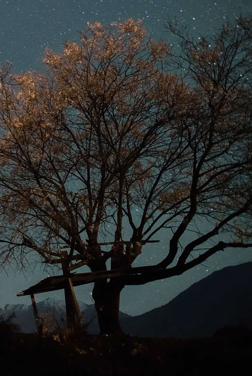 当雪山上“升起”最亮的星河,我却神奇地想起,那颗盒子里的巧克力糖,唯有“升起”或“打开”时,我们才能真正知道它的味道,月落之后,临近午夜,世界渐渐安静下来,星光灿烂,雪山静谧。雪山与森林静谧无声,夜色与春色一冷一暖,深空里的星云和星团一红一蓝。