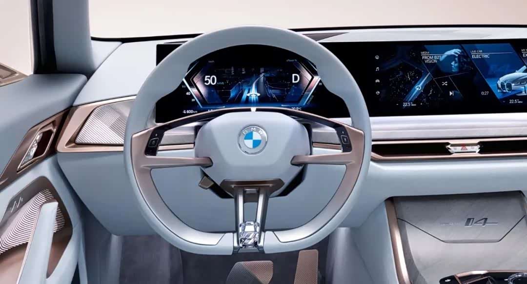 新logo用在车身上什么效果呢?以i4概念车为例,扁平化的图标,有一定科技感,但也显得过于简单,少了跟车身相融合的那种金属感,也缺少了豪华气息。