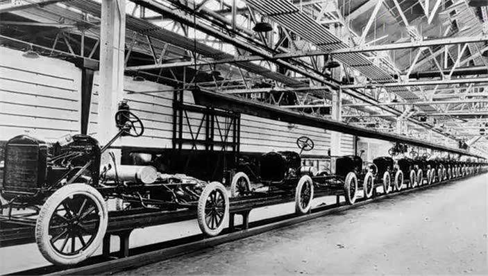 我们先来了解一下什么是造车平台,在汽车刚诞生的时候,汽车工业完全是手工作坊型,每装配一辆汽车就要728个人工小时,当时汽车的年产量大约12辆,完全满足不了巨大的市场需要,于是福特在1913年正式试验了第一条流水线,从而大大提高了效率。