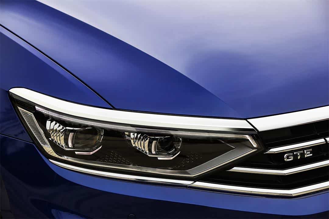 从外观设计来说,除去一些特有的新能源标识以及元素的存在以外,迈腾GTE相较常规迈腾更偏商务的风格,加入了一些运动化、个性化的元素,进一步增加了新迈腾GTE外观上的辨识度。车型专属的星辰蓝车身颜色、前中网GTE字标、侧面GTE 专属侧标牌等多处标识均凸显GTE身份。C型LED日行灯的造型富有辨识性与活力,同时兼具功能性,能够为日间行驶起到良好的提示作用。内饰方面,新迈腾GTE通过增加GTE专属仪表设计、GTE专属中控屏幕、GTE E-mode按键、座椅等多处位置的GTE标识,充分凸显迈腾GTE有别于常规大众车型的新能源身份。