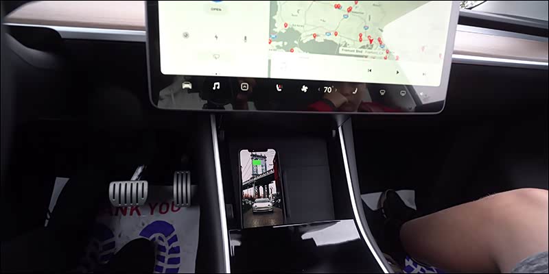 中控台及中央扶手的收纳空间、置杯架则与 特斯拉家族设计相似,在 Model Y 也配备无线充电板,可同时为两支手机进行无线充电。