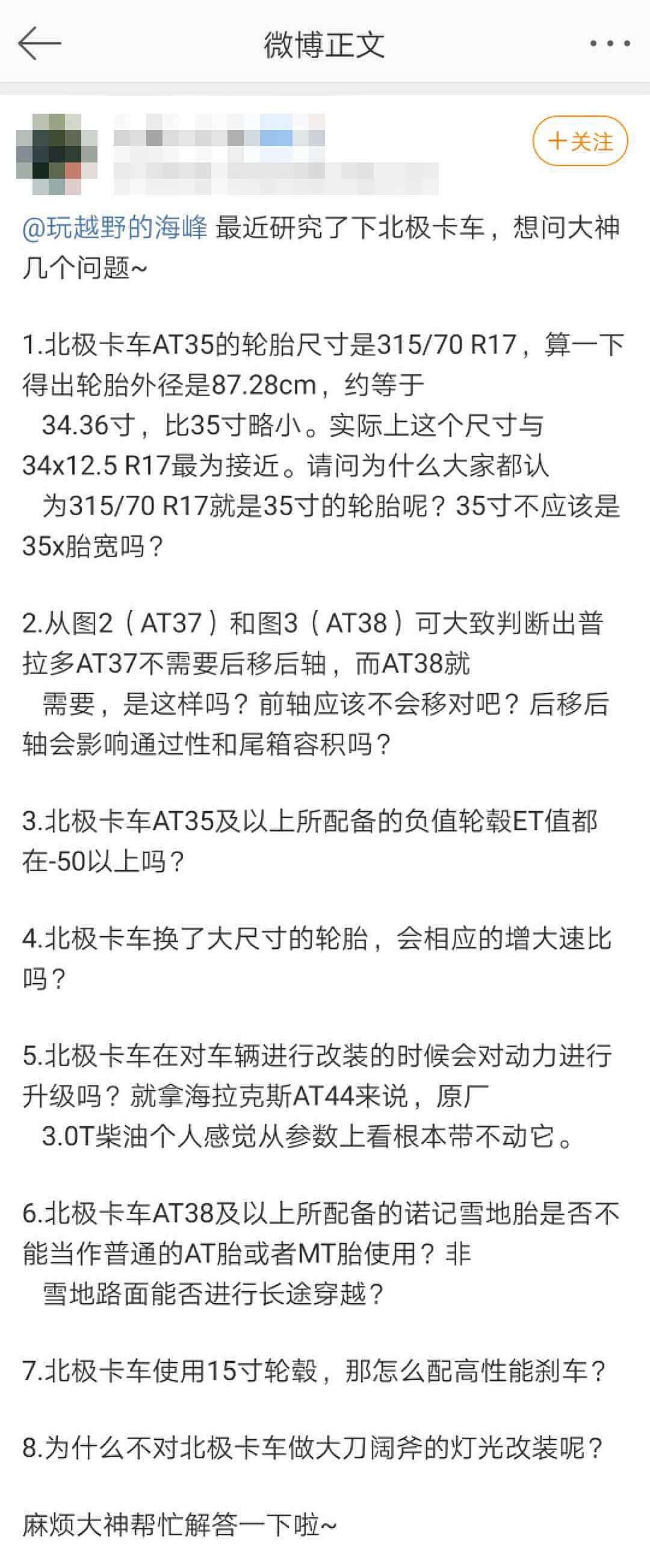 首先呢,我不是什么大神,只是众多北极卡车爱好者之一,和大家的不同在于我和国内仅有的那两台AT35接触更密切一些,也参与了车辆的改装以及后续的境外探险旅程。微博上这个朋友提出的疑问很有代表性,所以我决定把自己一些看法拿出来和所有喜欢北极卡车的朋友们交流~