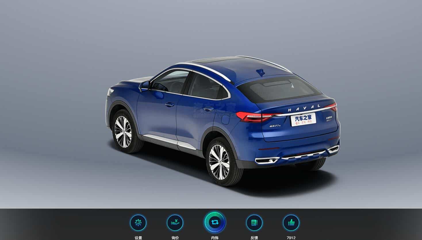 登录哈弗VR看车服务,选择F7x产品后,通过手指滑动手机屏幕这种简单的操作,便能360度查看这款车型的外观和内饰。可以看到,F7x采用了哈弗i-Home Platform全球化语言设计,前脸造型扁平化且前卫,黑色多边形格栅与两侧犀利的头灯组紧密相连,营造出很强的运动氛围。
