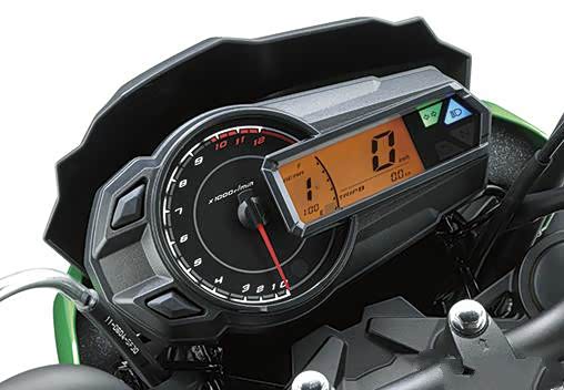 在细节配置上,这款车的大灯并没有采用主流的led或者是加装透镜,毕竟是小排量的摩托车呀!不过仪表确实采用比较主流的搭配机械指针外加全液晶仪表,在右侧也是分列了各类显示灯,功能显示非常齐全。单从仪表方面来看,并不感觉这款车是一款mini摩托车。
