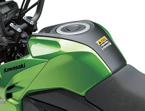 在车身设计上,这款川崎mini摩托车整长1700mm,整车质量只有102kg,相对来说操控比较灵活。座高方面高达780mm,比常规街车略低一点,驾驶上也比较方便。不过比较不错的是这款车的油箱高达7.4升,算是同级别车型当中比较大的。结合这款车125CC的排量,小编估算续航里程应该能轻松地达到250km以上。