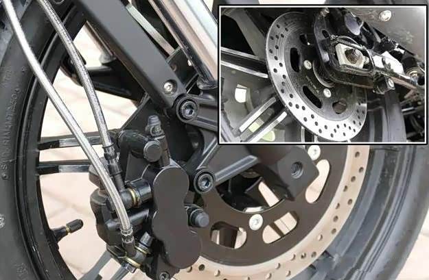 减震方面,这款车的前轮采用直径为37mm倒置减震器,后面则是采用双侧置单筒减震,虽然说原厂不具备调节功能,但出厂时的调校已经是偏向于舒适性驾驶,再加上原有巡航车的舒适性,让这款车长途骑行也不会感觉劳累。制动方面也是比较不错,前后采用主流碟刹,前轮匹配单向三活塞卡钳,后轮单活塞卡钳,并匹配了CBS前后刹车系统。