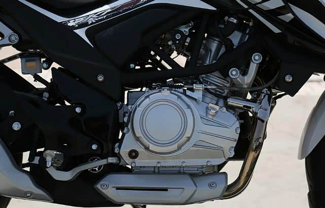 在核心动力上,这款KP350搭载的是由力帆自主研发的DRF350双缸发动机,同时采用水冷和电喷系统,动力表现十分不错。从官方所公布的数据当中,这款发动机最大功率21kW/8500rpm,最大扭矩28.5N·m/5500rpm,压缩比高达11.5:1,调校也是偏向于低扭,比较适合城市当中的日常通勤。