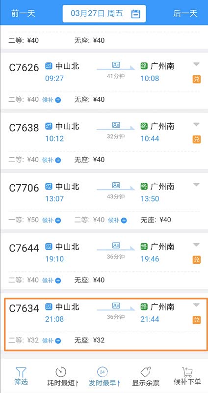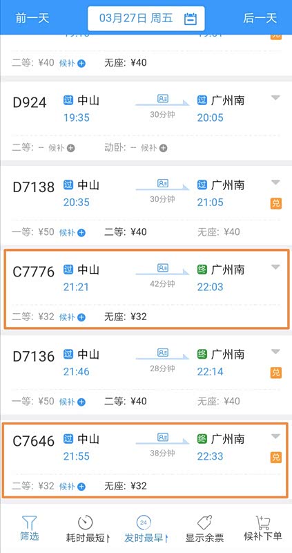 3月24日下午登录“铁路12306”APP发现,3月27日(星期五)起,广珠城际线路部分动车票价将实行折扣优惠。经梳理发现,我市多个站点当中,途经中山北站、中山站早晚多个班次的二等座显示有8折优惠,即原价40元打折后为32元。