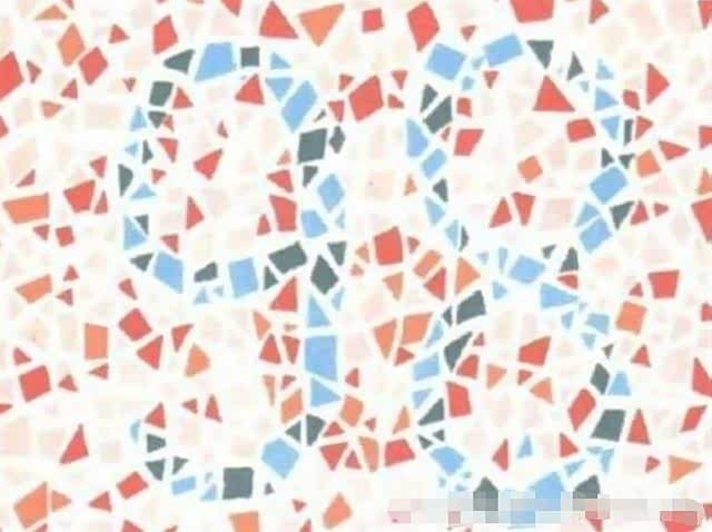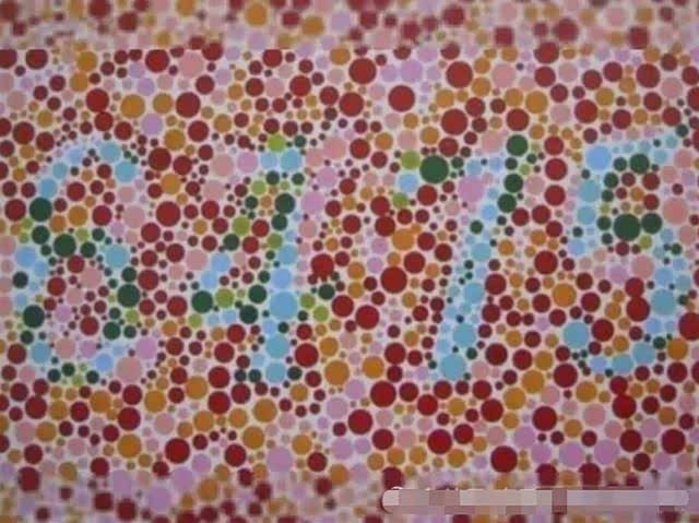 这张简单又经典的测试卡,里面有两个数字,很容易就能辨识出来。而色盲人群则分辨不出。