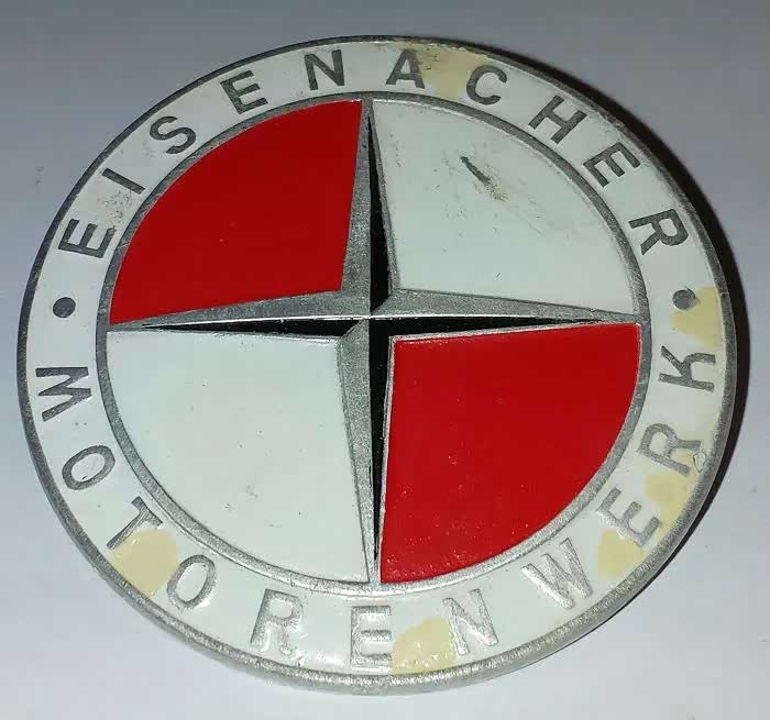 在这次换标的前一年,也就是1952年发生了两件特别重要的事件。第一,在慕尼黑总部的宝马最终获得了宝马的商标LOGO并重新生产汽车。第二,Automobilwerk Eisenach被苏联移交给当时的东德政府,正式成为了一家国有企业(关于这段故事下面会详细介绍)。由于不能再继续使用宝马蓝天白云车标,所以这家老牌车企重新了修改了车标并命名为EMW( Eisenacher Motorenwerk)把蓝天白云改为“红天白云”。