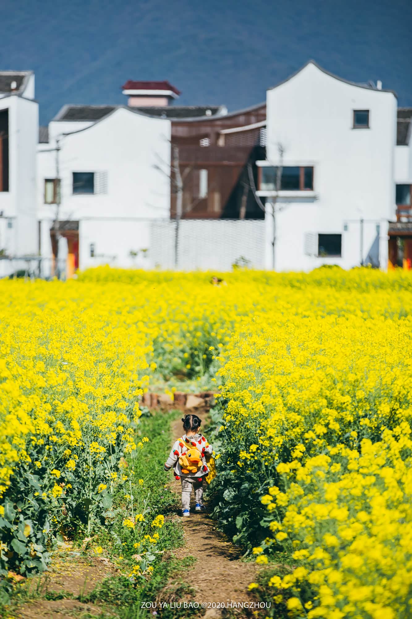 在六宝的带路下,我们决定穿过油菜花海到村庄参观。小朋友总是喜欢走不寻常的道路。