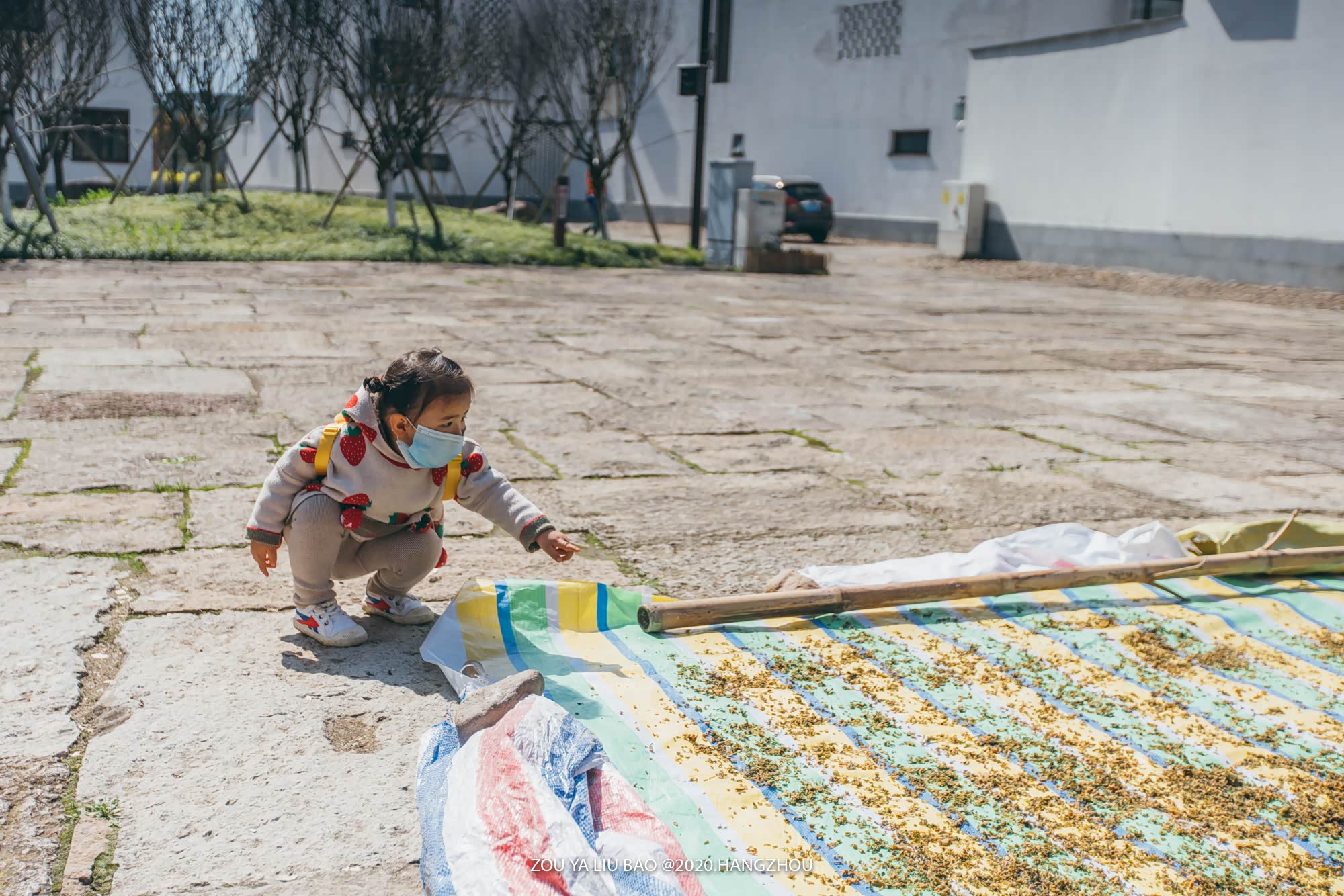 村子里现在游人不多,空荡荡的路面上晒着菜干。六宝很好奇的蹲下来,指着菜干问我,“妈妈,这个是什么?”