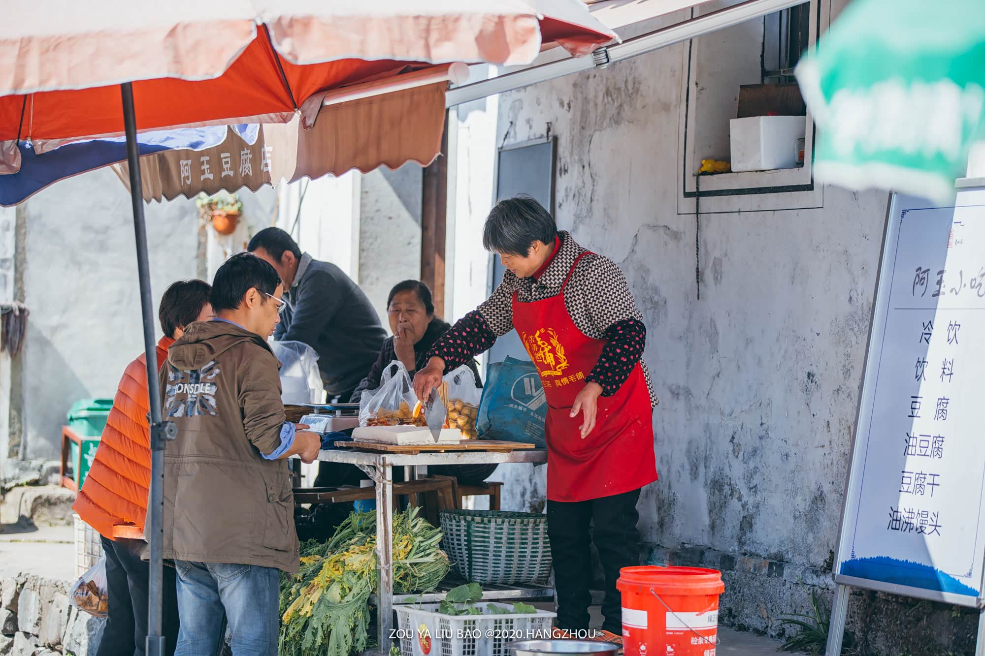 水岸边的阿玉豆腐店一直都很热闹,不时的有人前来购买,阿姨的笑声隔着水塘都能听得见。
