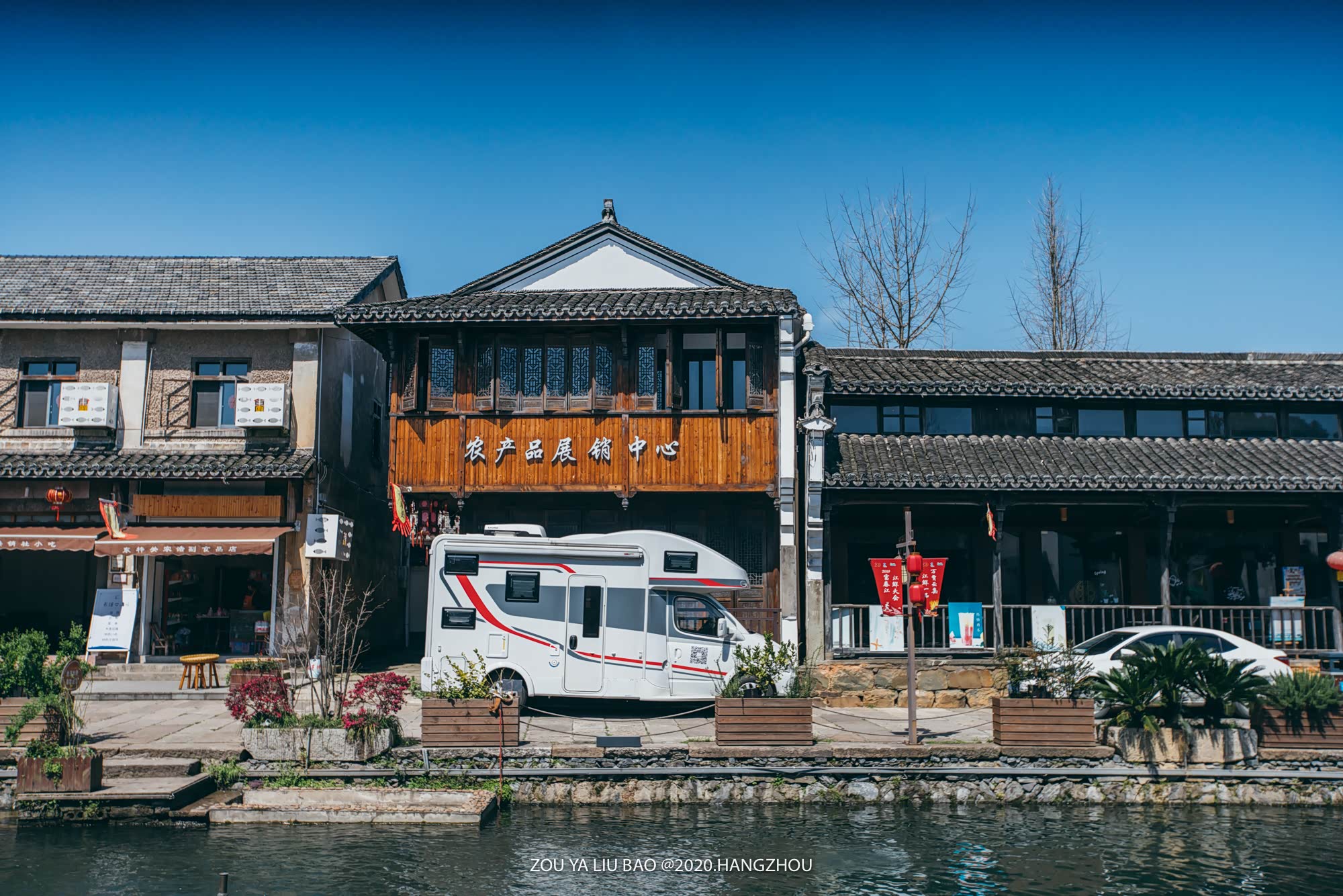 长塘边建筑不知道是不是明清时的老建筑改建而成的,现在很多被改建成了各种店面。疫情尚未稳定,还有很多没有开张。