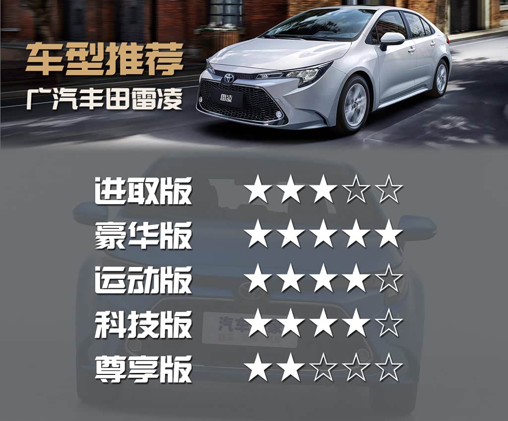 全新雷凌依旧提供燃油版和双擎两大系列。尽管近年来混合动力颇受欢迎,但不可否认燃油版更为务实,售价也更加亲民。今天这篇文章中,就让我们看看全新雷凌燃油版实力如何,五档配置中哪款值得推荐。