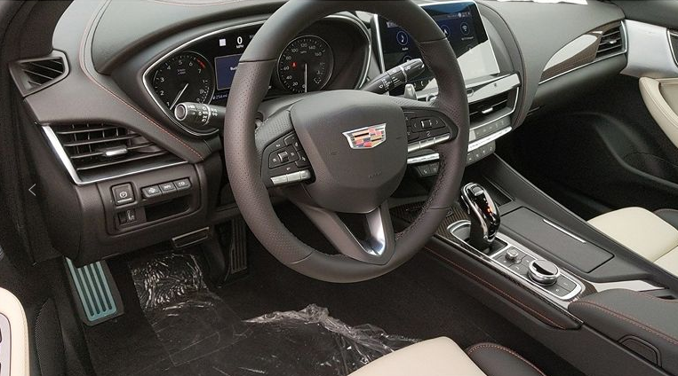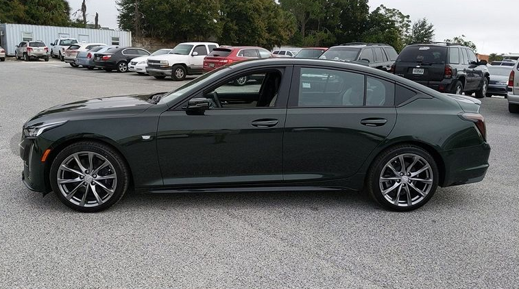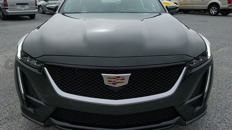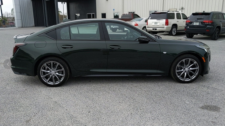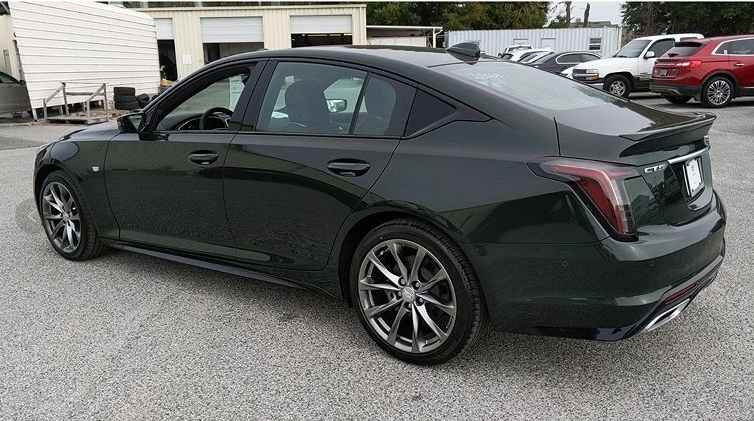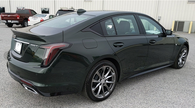 凯迪拉克CT5,定位中型轿车,实拍。外观采用绿色涂装,前脸采用家族式的设计风格,中网采用网状的设计,前大灯采用时尚犀利的造型,LED日间行车灯很有辨识度,下格栅采用网状设计,前脸处理运动。侧面车身腰线简洁优雅,后视镜设计时尚,轮毂采用运动个性的造型。尾部采用优雅大气的造型,尾灯精致潮流,排气设计运动。内饰家族式的设计风格,用料考究,做工精细,空间宽敞。
