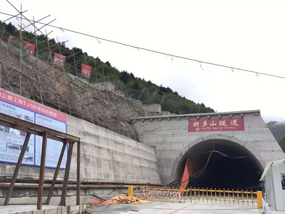 折多山隧道路线全长10244m,其中新建隧道长8427m,是目前国内在建的最长的二级公路高海拔隧道。隧道起于康定市榆林镇折多塘村道班沟沟口的G318线,跨折多河,穿越折多山,止于瓦泽乡塘泥坝村,与现有的G318线相接。
