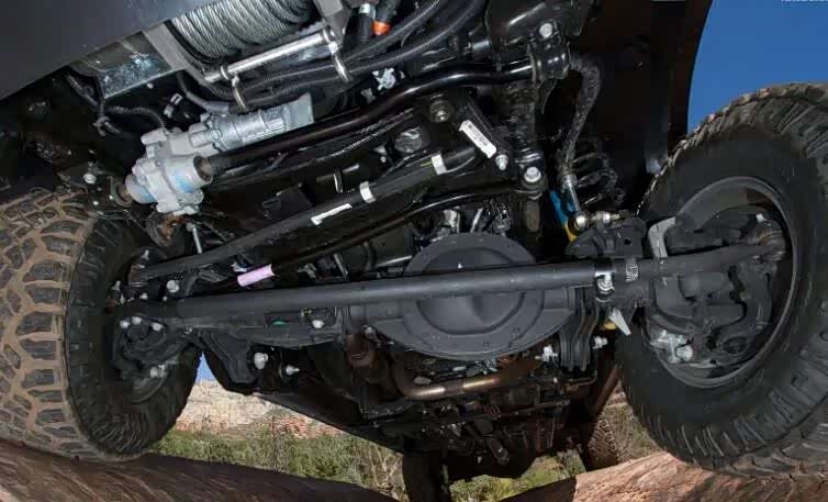 牧马人的防倾杆是可以分离的,为了保证越野时能获得最大的避震行程,牧马人可以手动将防倾杆分离,而公路行驶时在把它连起来。