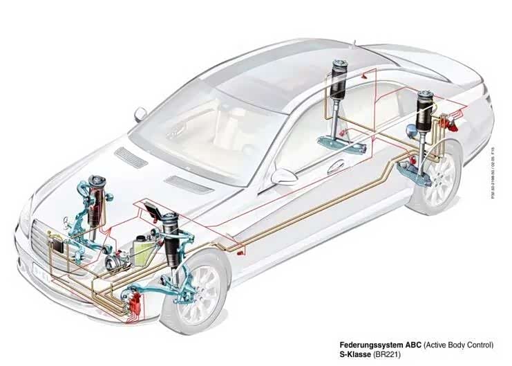 奔驰S600\CL600等装备了ActiveBody Control(主动车身控制)系统的车,是没有防倾杆的,因为ABC系统依靠液压随时调整四根避震的高度,压力高达180Bar,响应速度非常快,并不需要额外加入防倾杆来抵抗侧倾。