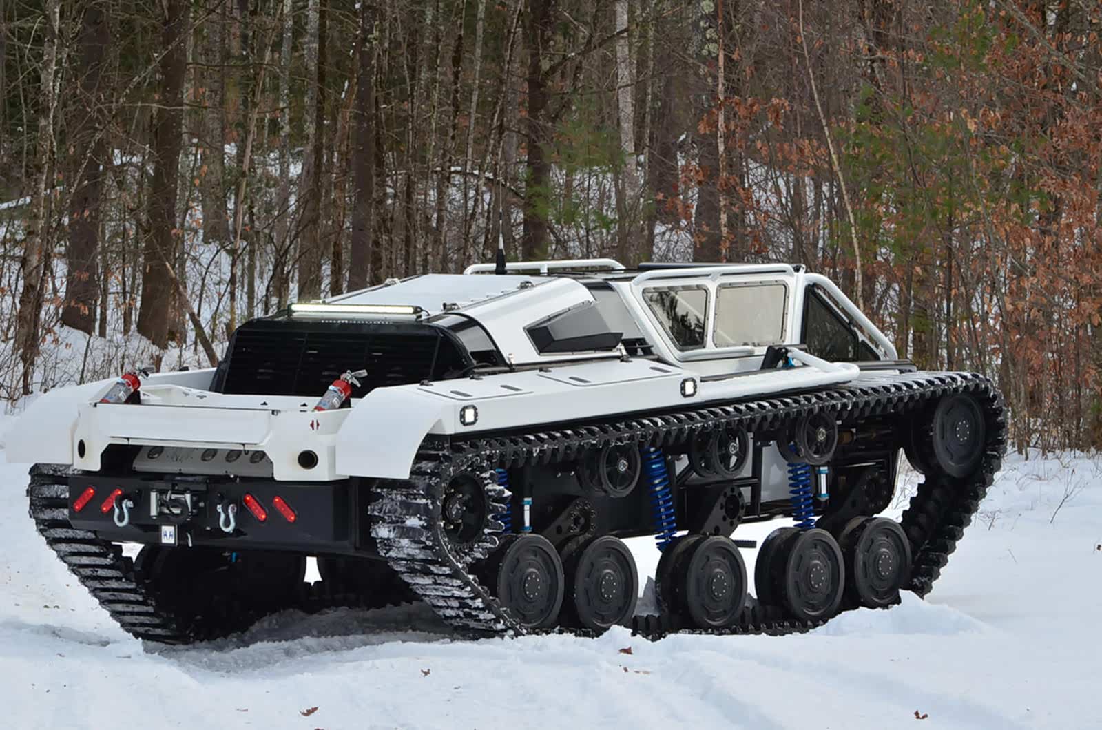 可能有车友看到这款车时感觉它并不陌生,Ripsaw EV2曾在电影《速度与激情8》中作为战车出现。这台车名字中的EV可不是电动汽车的意思,而是Extreme Vehicle(超级车辆)的缩写。EV2拥有高底盘离地间隙和履带式设计,它无论看上去还是跑起来都像一台小型坦克,常规越野对EV2构不成挑战。最重要的是它动力强劲,6.6L柴油涡轮发动机原厂有着600马力的最大功率,而且经过改装后功率可达1500马力,架上武器它就变身为一辆越野战车。