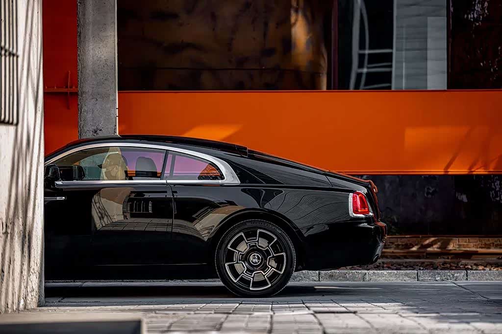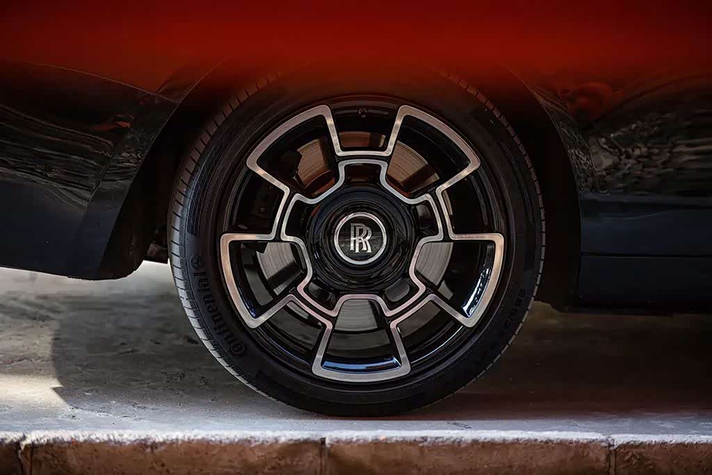 Black Badge版本给车身注入诸多黑色元素,最引人瞩目的当属黑色欢庆女神,女神立标采用暗黑色高光镀铬铸造,就像是来自黑夜的使者。21英寸轮圈由钛金属与碳纤维结合的材质打造而成,“RR”标志保持始终向上的状态。