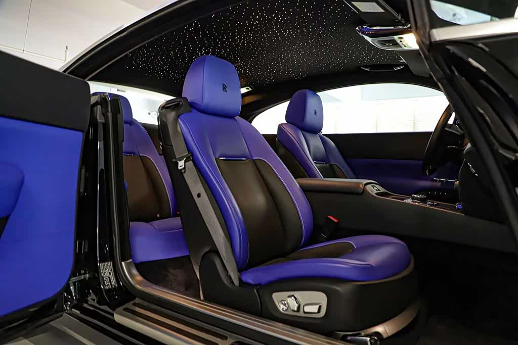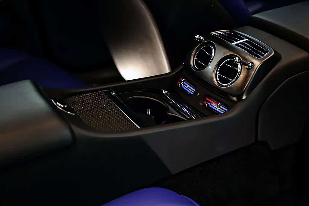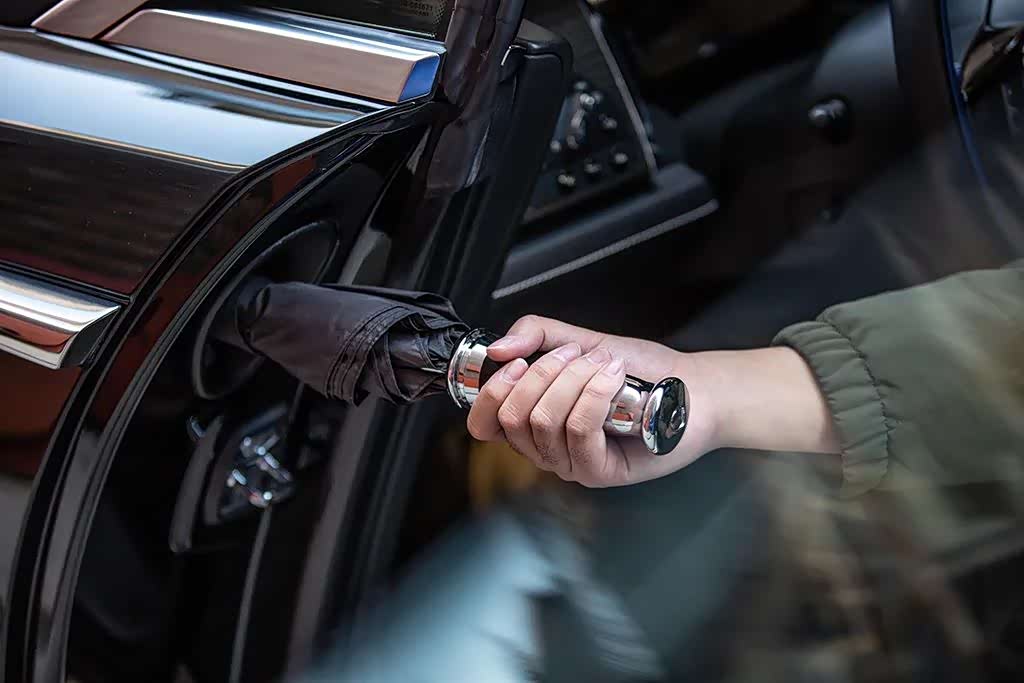 马车式车门开启方式是劳斯莱斯的传统设计,即便是双门版车型,也要有所保留。车门开启为手动,坐入车内可通过A柱下方的按钮控制车门自动关闭。左右车门内侧藏有雨伞,这也是劳斯莱斯车型的传统配置,只需按下按钮,雨伞就会弹出来。