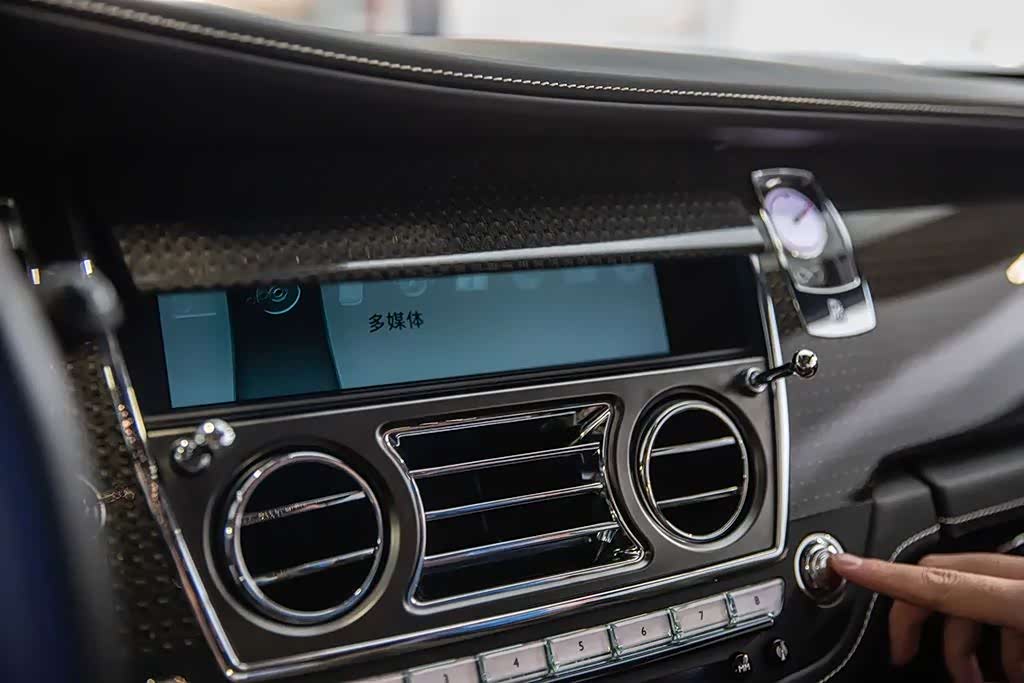 仪表盘采用白底黑色的传统指针样式,个人认为这样更能够体现精致工艺和经典传承。劳斯莱斯车型均没有发动机转速表,最左侧的是动力储备表,以百分比的形式,显示当下还有多少动力可供调遣。