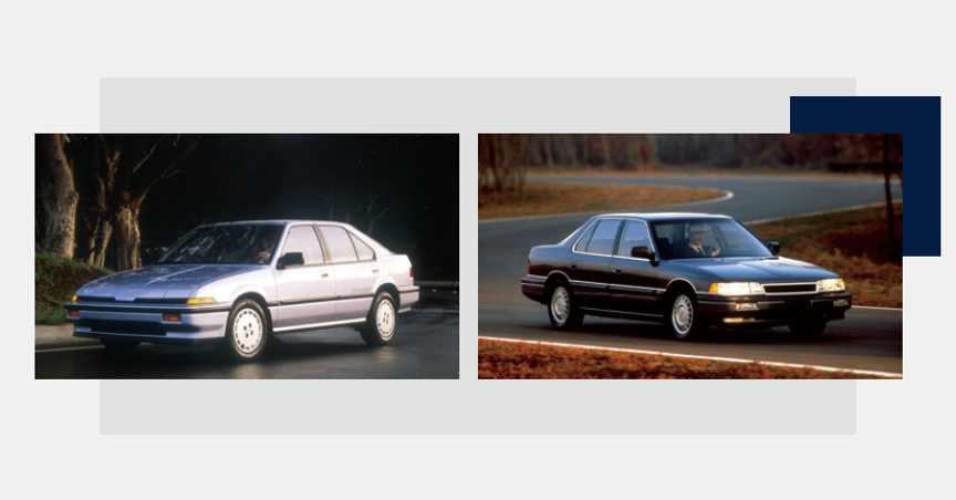1986年讴歌推出首款轿车——Legend 4门版本及Integra 5门掀背型轿车和3门运动型轿车。1987年和1988年,讴歌连续两年成为全美进口豪华车的销售冠军,并推出了首部配备气囊的车型Legend Coupe。