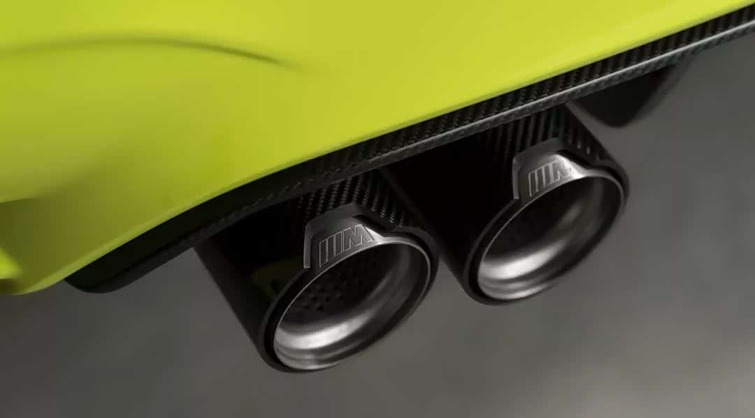 其实不是奥斯汀黄,宝马将这种车身颜色命名为Speed Yellow(竞速黄),这种个性化金属漆在山峦之间显得格外醒目,黄色的外观、黄色的卡钳、碳纤的外观套件、蓝色的激光大灯组...这样的组合不免有些过于帅气~