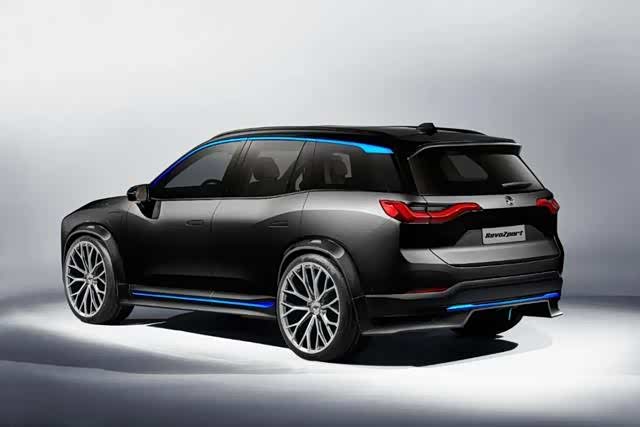 外观方面,RevoZport为蔚来ES8的前唇、轮眉、侧裙、侧窗上沿等部位更换上了碳纤维套件,并在前脸、侧裙和侧窗上沿搭配了蓝色涂装,换装了“树叉状”的22英寸多辐式轮圈,轮胎胎宽升级至285。